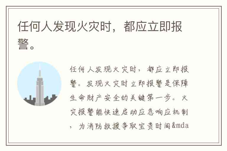 任何人发现火灾时,都应立即报警。
