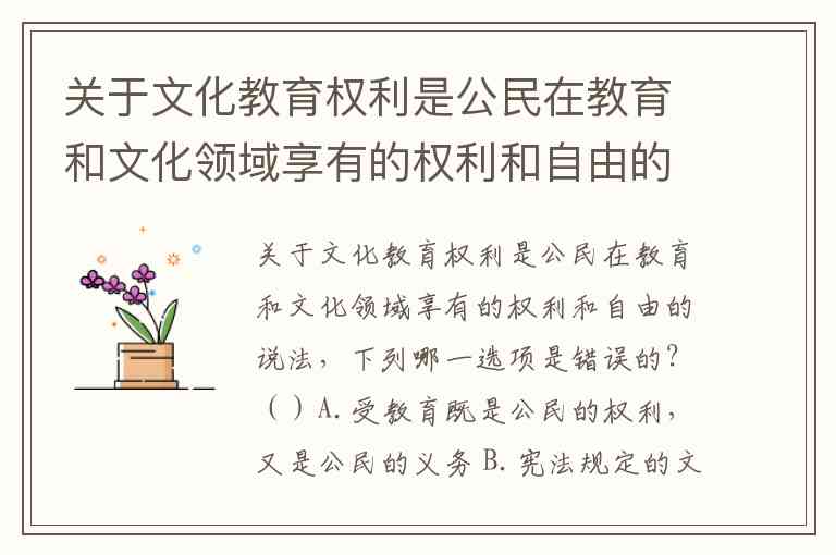 关于文化教育权利是公民在教育和文化领域享有的权利和自由的说法,下列哪一选项是错误的?()A.受教育既是公民的权利,又是公民的义务 B.宪法规定的文化教育权利是公民的基本权利 C.我国公民有进行科学研究、文学艺术创作和其他文化活动的自由 D.我国宪法没有明确规定公民受教育权利