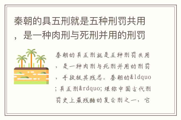 秦朝的具五刑就是五种刑罚共用,是一种肉刑与死刑并用的刑罚,手段极其残忍。