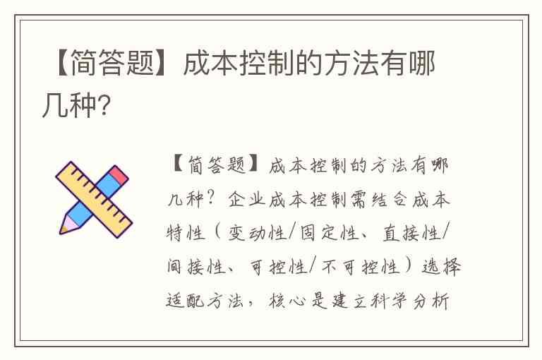 【简答题】成本控制的方法有哪几种?