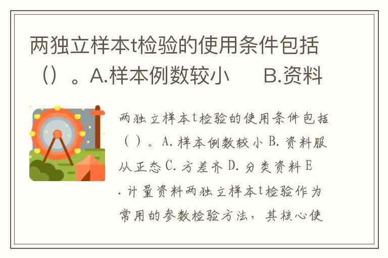 两独立样本t检验的使用条件包括()。A.样本例数较小 B.资料服从正态 C.方差齐 D.分类资料 E.计量资料