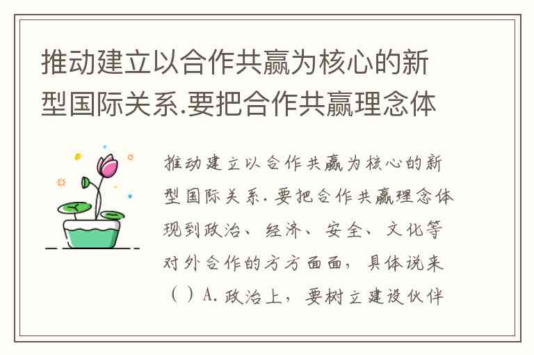 推动建立以合作共赢为核心的新型国际关系.要把合作共赢理念体现到政治、经济、安全、文化等对外合作的方方面面,具体说来()A.政治上,要树立建设伙伴关系的新思路 B.经济上,要开创共同发展的新前景 C.安全上,要营造各国共享安全的新局面 D.文化上,要形成不同文明包容互鉴的新气象