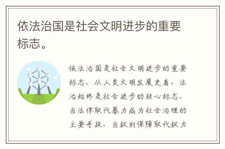 依法治国是社会文明进步的重要标志。