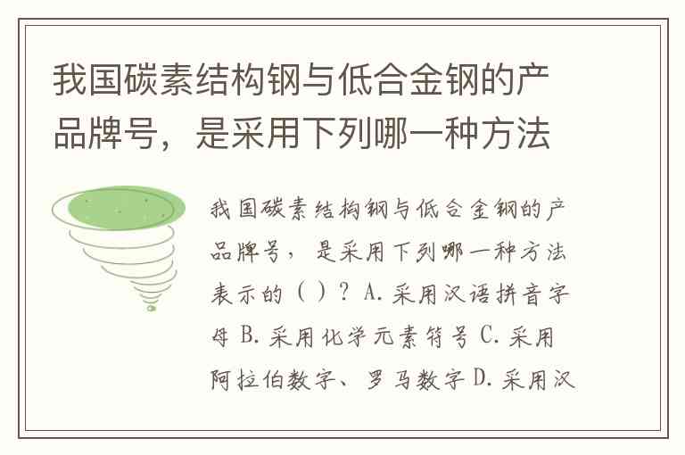 我国碳素结构钢与低合金钢的产品牌号,是采用下列哪一种方法表示的()?A.采用汉语拼音字母 B.采用化学元素符号 C.采用阿拉伯数字、罗马数字 D.采用汉语拼音字母、阿拉伯数字相结合