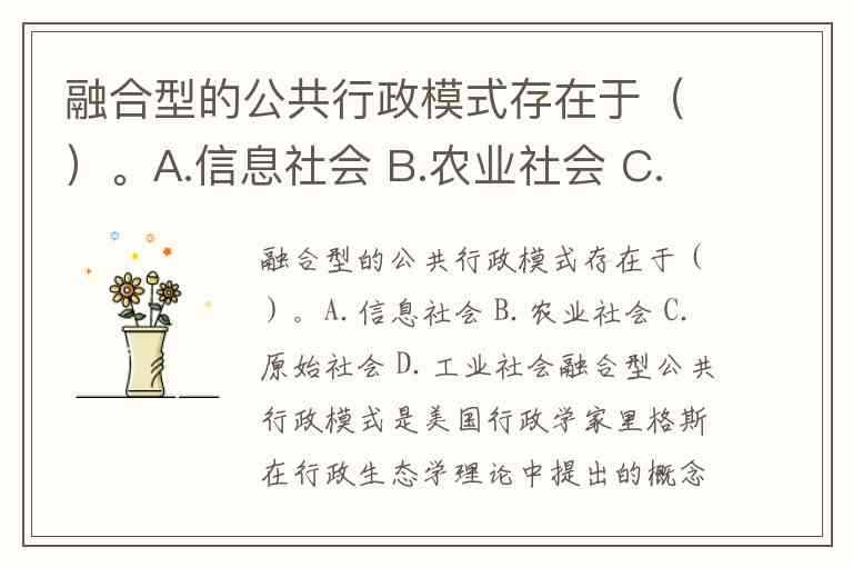 融合型的公共行政模式存在于()。A.信息社会 B.农业社会 C.原始社会 D.工业社会