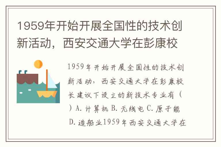 1959年开始开展全国性的技术创新活动,西安交通大学在彭康校长建议下设立的新技术专业有()A.计算机 B.无线电 C.原子能 D.造船业