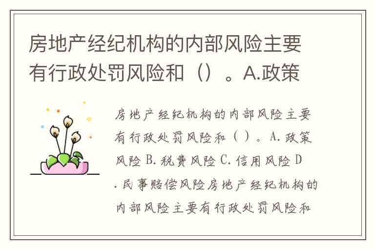 房地产经纪机构的内部风险主要有行政处罚风险和()。A.政策风险 B.税费风险 C.信用风险 D.民事赔偿风险