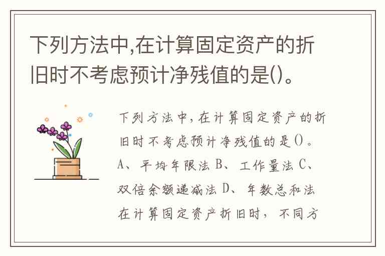 下列方法中,在计算固定资产的折旧时不考虑预计净残值的是()。A、平均年限法 B、工作量法 C、双倍余额递减法 D、年数总和法