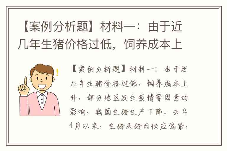 【案例分析题】材料一:由于近几年生猪价格过低,饲养成本上升,部分地区发生疫情等因素的影响,我国生猪生产下降。去年4月以来,生猪及猪肉供应偏紧,价格出现较大幅度上涨。猪肉价格一涨,苦了居民,喜了农民。农民有了更多的收获,当然高兴。但城市居民的生活受到影响,富了的城市人毕竟是少数,大多数城市居民还是中低收入者,面对十几元一斤的猪肉实在尴尬。 材料二:从2011年12月以来,居民消费物价指数(CPI)的涨幅有明显增加的趋势。去年一季度CPI是2.7%,二季度到了3.6%,如果从单月来看,六月份到达4.4%,七月份到达了5.6%。通过认真分析发现,物价上涨主要是由食品类价格上涨引起的。 结合上述材料,回答下列问题:猪肉价格上涨体现了经济生活的哪些道理?