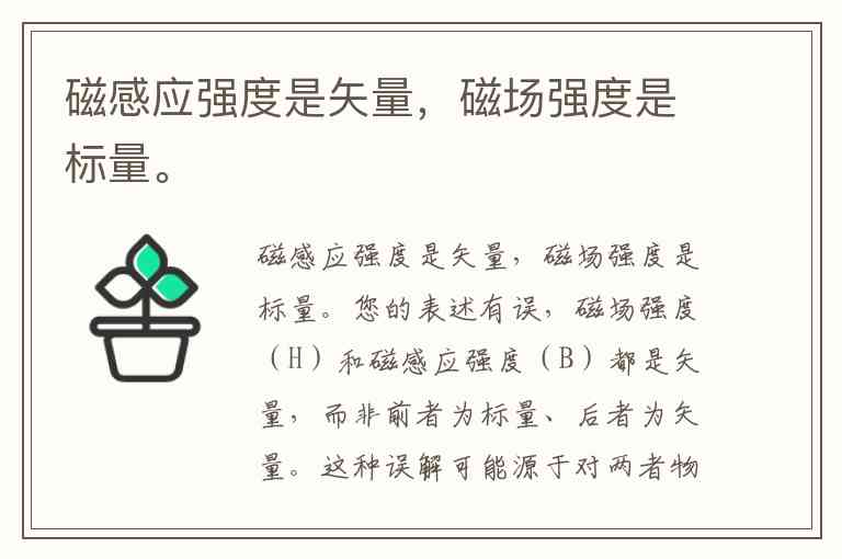 您的表述有误,磁场强度(H)和磁感应强度(B)都是矢量,而非前者为标量、后者为矢量。这种误解可能源于对两者物理意义的混淆——它们描述磁场的不同侧面,但都具有大小和方向两个要素。