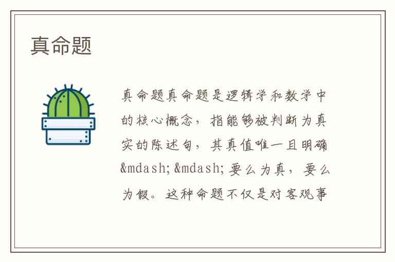 真命题是逻辑学和数学中的核心概念,指能够被判断为真实的陈述句,其真值唯一且明确——要么为真,要么为假。这种命题不仅是对客观事实的准确描述(如“北京是中国的首都”),也可以是在特定理论框架内通过逻辑推导成立的结论(如“三角形内角和等于180度”在欧几里得几何中)。