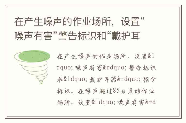 在产生噪声的作业场所,设置“噪声有害”警告标识和“戴护耳器”指令标识。
