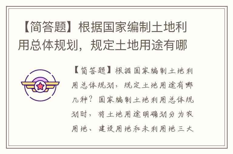【简答题】根据国家编制土地利用总体规划,规定土地用途有哪几种?