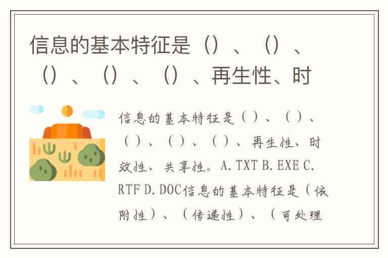 信息的基本特征是()、()、()、()、()、再生性、时效性、共享性。A.TXT B.EXE C.RTF D.DOC