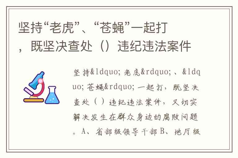 坚持“老虎”、“苍蝇”一起打,既坚决查处()违纪违法案件,又切实解决发生在群众身边的腐败问题。A、省部级领导干部 B、地厅级领导干部 C、县处级领导干部 D、领导干部