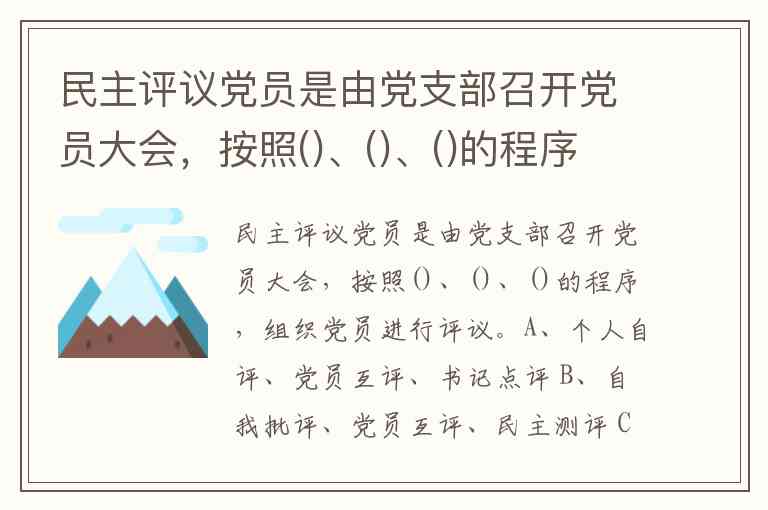 民主评议党员是党支部每年开展一次的重要组织生活,其核心程序在《漫说支部工作》《如何开展民主评议党员》等权威资料中被明确规范为个人自评、党员互评、民主测评三个关键环节,对应选项C。这一流程设计体现了党内政治生活的严肃性和规范性,既强调党员自我剖析,也注重党内批评与监督的有机结合。