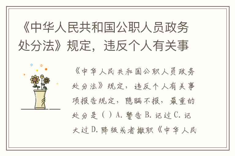 《中华人民共和国公职人员政务处分法》规定,违反个人有关事项报告规定,隐瞒不报,最重的处分是()A.警告 B.记过 C.记大过 D.降级或者撤职