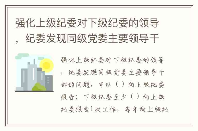 强化上级纪委对下级纪委的领导,纪委发现同级党委主要领导干部的问题,可以()向上级纪委报告;下级纪委至少()向上级纪委报告1次工作,每年向上级纪委进行述职。A.直接;每半年 B.直接;每年 C.间接;每年 D.间接;每半年