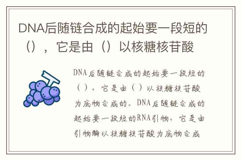 DNA后随链合成的起始要一段短的RNA引物,它是由引物酶以核糖核苷酸为底物合成的。