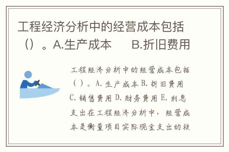 在工程经济分析中,经营成本是衡量项目实际现金支出的核心指标,计算公式为经营成本=总成本费用-折旧费-维简费-摊销费-财务费用。这一概念剔除了非现金支出(如折旧、摊销)和筹资成本(如利息),专注于生产经营期内实际发生的现金流出。