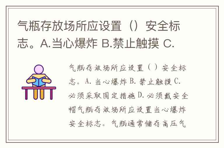 气瓶存放场所应设置()安全标志。A.当心爆炸 B.禁止触摸 C.必须采取固定措施 D.必须戴安全帽