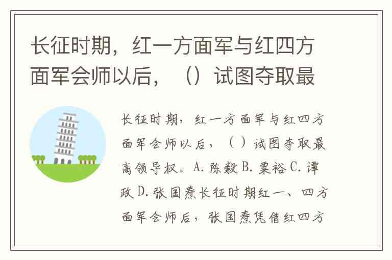 长征时期,红一方面军与红四方面军会师以后,()试图夺取最高领导权。A.陈毅 B.粟裕 C.谭政 D.张国焘