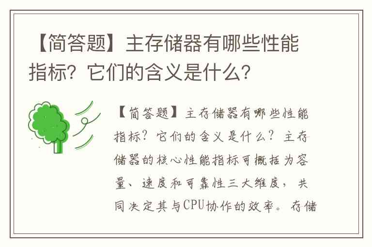 【简答题】主存储器有哪些性能指标?它们的含义是什么?