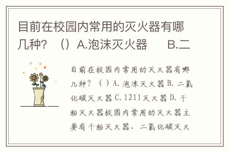 目前在校园内常用的灭火器有哪几种?()A.泡沫灭火器 B.二氧化碳灭火器 C.1211灭火器 D.干粉灭火器