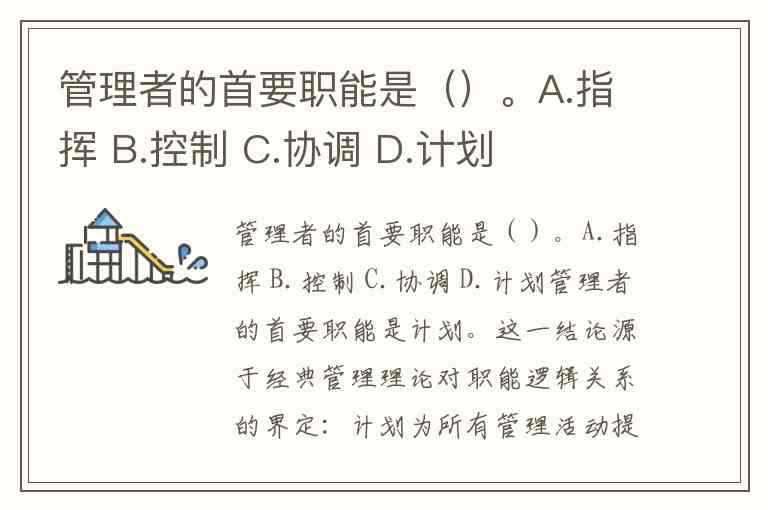 管理者的首要职能是计划。这一结论源于经典管理理论对职能逻辑关系的界定:计划为所有管理活动提供目标框架与行动路径,是组织、指挥、协调和控制等后续职能的基础。法约尔提出的管理五职能理论中,计划被明确为起点,通过设定目标(如销售计划中的市场定位、生产计划中的资源分配)避免团队陷入"救火队"式的混乱。