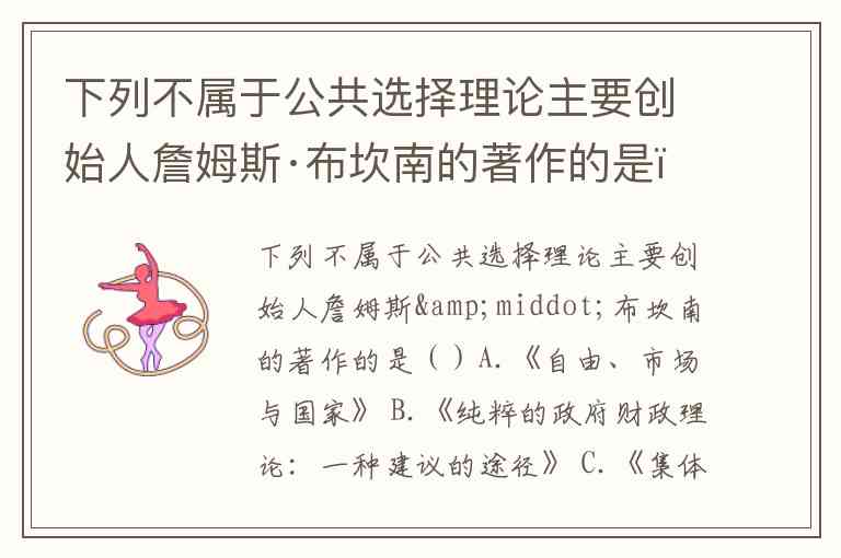 B.《纯粹的政府财政理论:一种建议的途径》:虽未直接出现在搜索结果中,但布坎南作为公共财政理论的核心学者,其著作《民主财政论》等均围绕财政理论展开,该选项符合其研究领域。