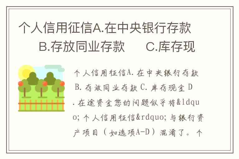 您的问题似乎将“个人信用征信”与银行资产项目(如选项A-D)混淆了。个人信用征信是记录和评估个人信用状况的系统,而选项A至D描述的是银行会计中的现金资产类别,二者分属不同领域。以下是具体说明: