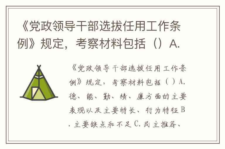 《党政领导干部选拔任用工作条例》明确规定,领导干部考察材料需全面、写实反映考察对象情况,标准答案为ABCD四个选项。根据条例第三十二条(2019年、2022年版本),考察材料必须包含四大核心内容: