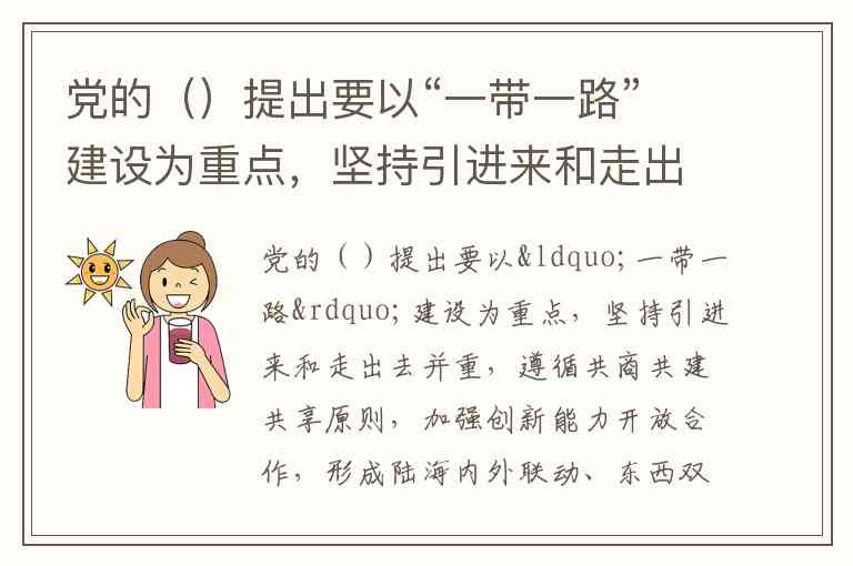 党的()提出要以“一带一路”建设为重点,坚持引进来和走出去并重,遵循共商共建共享原则,加强创新能力开放合作,形成陆海内外联动、东西双向互济的开放格局。A.十八大 B.十九大 C.十八届三中全会 D.十九届三中全会