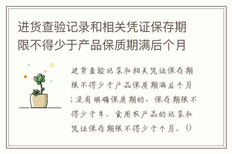 根据《中华人民共和国食品安全法》及配套规定,进货查验记录的保存期限需根据产品类型和保质期情况分类确定。对于有明确保质期的产品,记录和凭证应保存至保质期满后六个月;无明确保质期的,保存期限为二年;而食用农产品的记录保存期限统一为六个月。这一制度设计既保障了食品追溯的时效性,又兼顾了不同品类食品的流通特点。