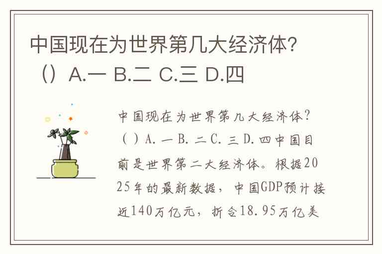 中国现在为世界第几大经济体?()A.一 B.二 C.三 D.四