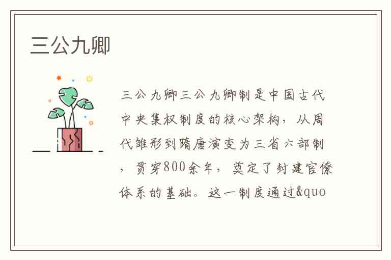 从秦汉到隋唐,三公九卿制不仅奠定了中国古代官僚体系的基础,其"分权制衡""专业行政"的治理智慧,更成为中华文明政治制度的重要遗产。当我们审视现代政府的"立