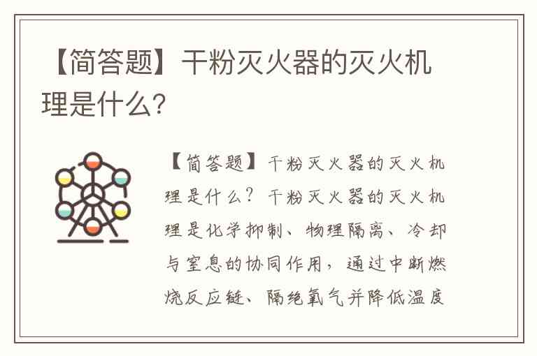 干粉灭火器的灭火机理是化学抑制、物理隔离、冷却与窒息的协同作用,通过中断燃烧反应链、隔绝氧气并降低温度实现快速灭火。其核心原理基于干粉灭火剂(通常含碳酸氢钠或磷酸铵盐等成分)与火焰的物理化学相互作用。