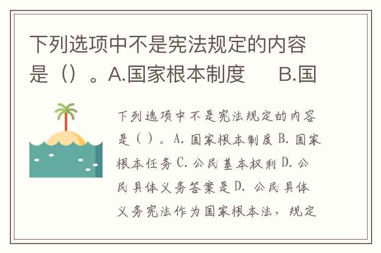 下列选项中不是宪法规定的内容是()。A.国家根本制度 B.国家根本任务 C.公民基本权利 D.公民具体义务