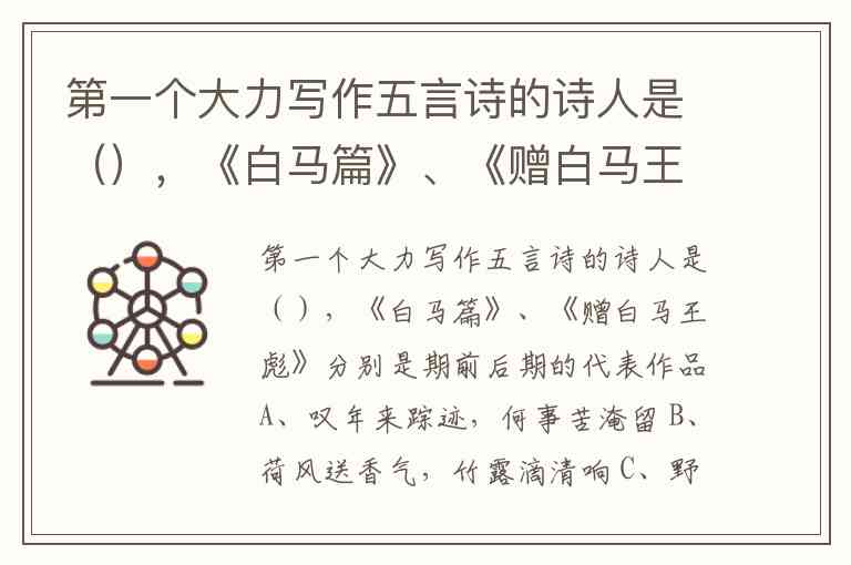 第一个大力写作五言诗的诗人是(),《白马篇》、《赠白马王彪》分别是期前后期的代表作品A、叹年来踪迹,何事苦淹留 B、荷风送香气,竹露滴清响 C、野火烧不尽,春风吹又生 D、涧户寂无人,纷纷开且落