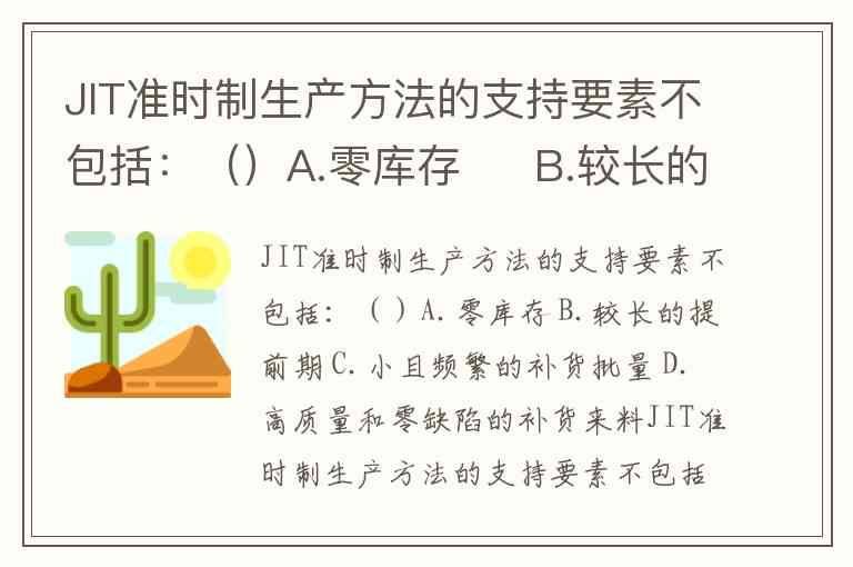 JIT准时制生产方法的支持要素不包括较长的提前期(选项B)。JIT的核心是通过“按需生产”消除浪费,其支持体系恰恰要求缩短提前期、减少库存、确保高质量供应和小批量补货。