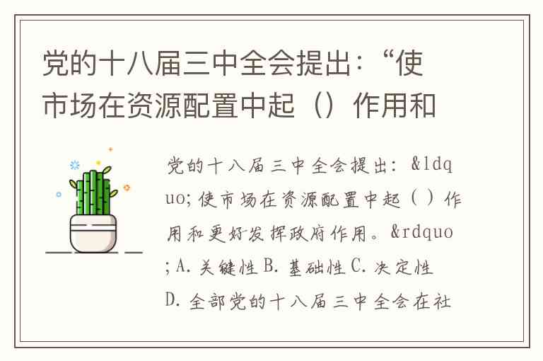 党的十八届三中全会提出:“使市场在资源配置中起()作用和更好发挥政府作用。”A.关键性 B.基础性 C.决定性 D.全部