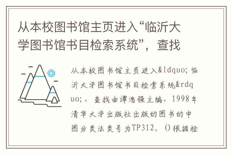 从本校图书馆主页进入“临沂大学图书馆书目检索系统”,查找由谭浩强主编,1998年清华大学出版社出版的图书的中图分类法类号为TP312。()