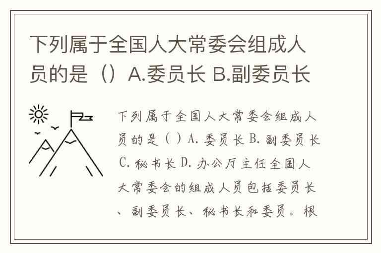 下列属于全国人大常委会组成人员的是()A.委员长 B.副委员长 C.秘书长 D.办公厅主任