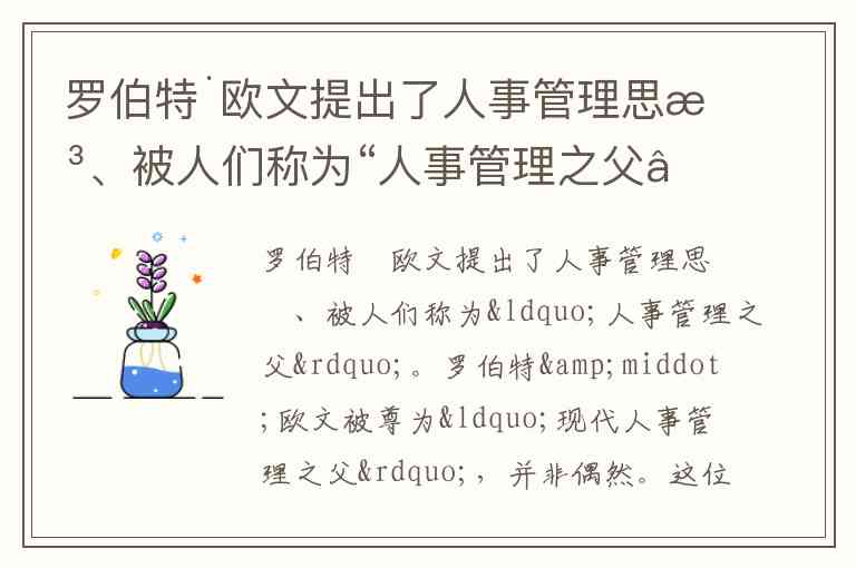 罗伯特˙欧文提出了人事管理思想、被人们称为“人事管理之父”。