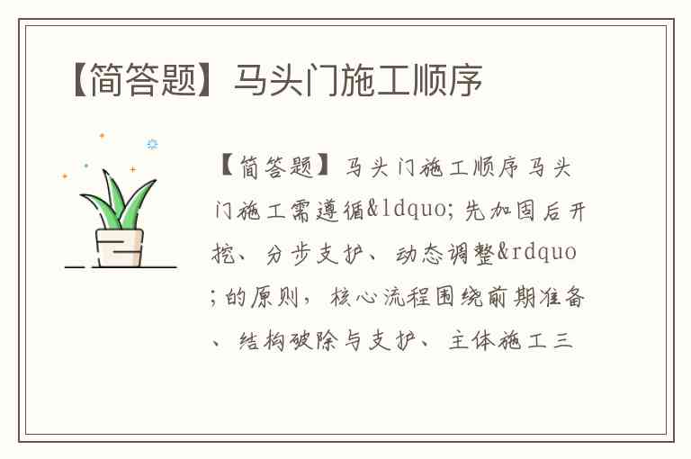 马头门施工需遵循“先加固后开挖、分步支护、动态调整”的原则,核心流程围绕前期准备、结构破除与支护、主体施工三大阶段展开,不同场景(如地铁隧道、竖井工程)会有工艺差异。以下是标准化施工顺序: