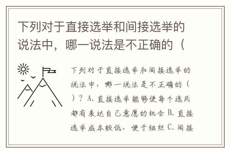不正确的说法是 B. 直接选举成本较低,便于组织。