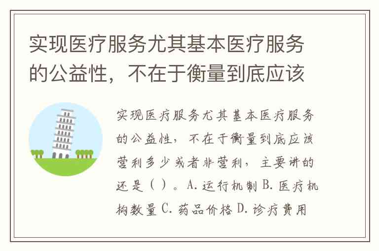 实现医疗服务尤其基本医疗服务的公益性,不在于衡量到底应该营利多少或者非营利,主要讲的还是()。A.运行机制 B.医疗机构数量 C.药品价格 D.诊疗费用高低