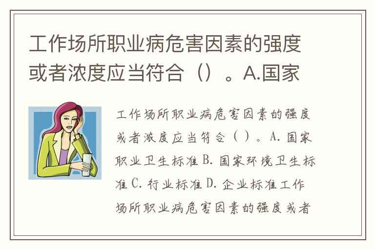 工作场所职业病危害因素的强度或者浓度应当符合()。A.国家职业卫生标准 B.国家环境卫生标准 C.行业标准 D.企业标准