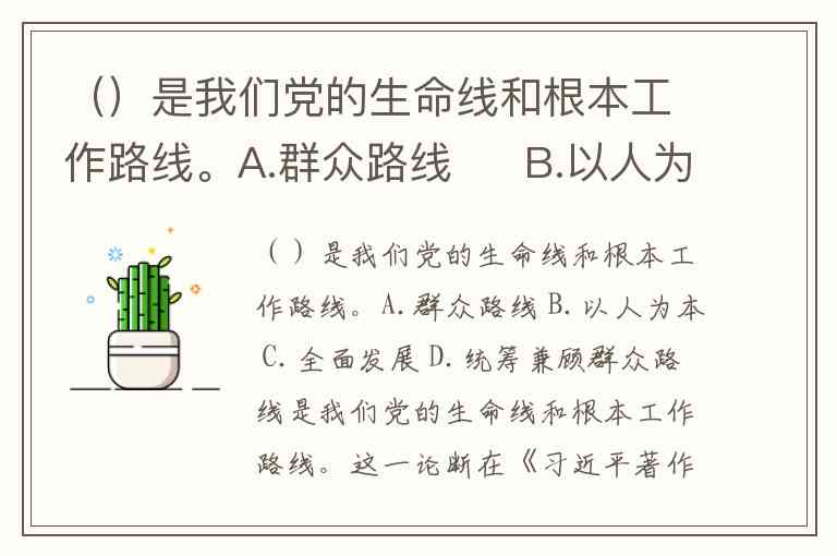 ()是我们党的生命线和根本工作路线。A.群众路线 B.以人为本 C.全面发展 D.统筹兼顾