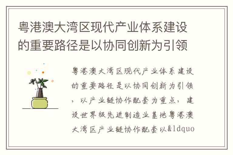 粤港澳大湾区现代产业体系建设的重要路径是以协同创新为引领,以产业链协作配套为重点,建设世界级先进制造业基地